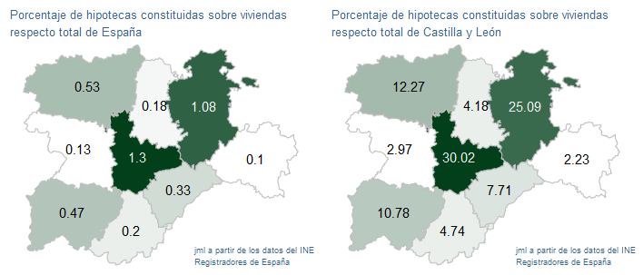 Número de hipotecas constituidas sobre viviendas en las provincias de Castilla y León - porcentajes